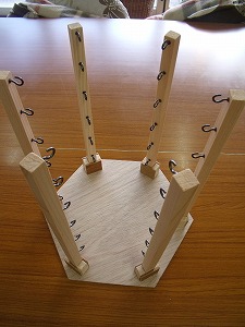 セッタップ!! ボードに柱を6本立てます。 ボードの大きさは、縦横約25cm。柱の高さが30cmとなかなか迫力があります。
