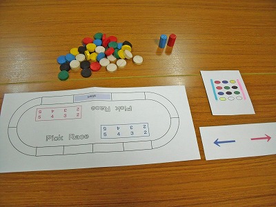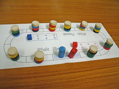 プレーヤーはボード上のトラックを周回し、停まったマスにあるチップをピッキングしながら既定の4セット先に集めれば勝ちとなります。