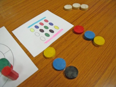 ただし、両者が4セット達成できない場合が判明した瞬間から、手元のチップ3個を任意の色チップ1つ分として変換できます。