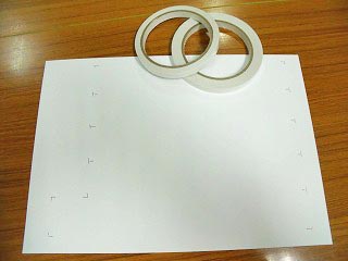両面テープをはがし厚紙を貼り付けた後、再度印をつけ両面テープを貼ります。