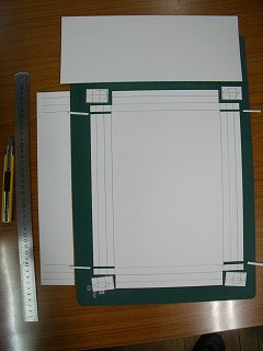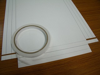 こんな感じに。丸印が両面テープ。 あとは折るだけです。